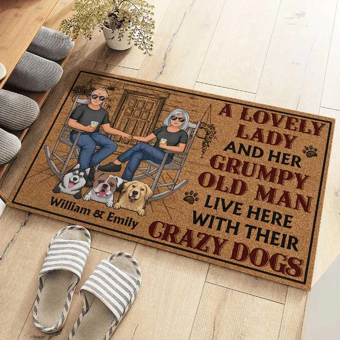 Message: “A lovely lady & her grumpy old man live here with their dog(s)”.