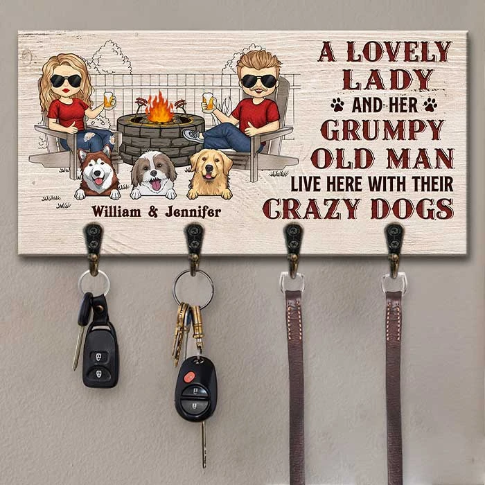 Message: “A lovely lady and her grumpy old man live here with their crazy dog/dogs”.