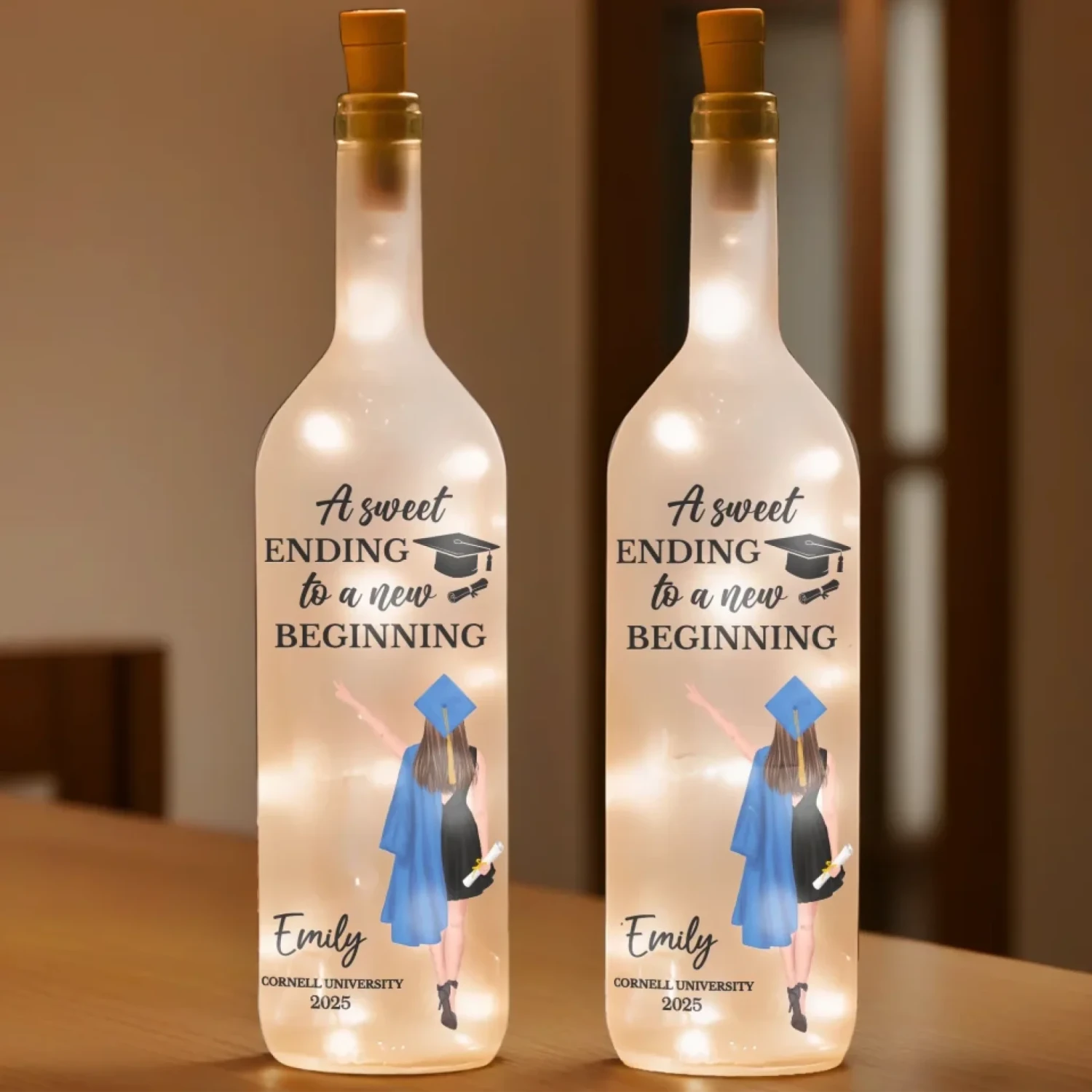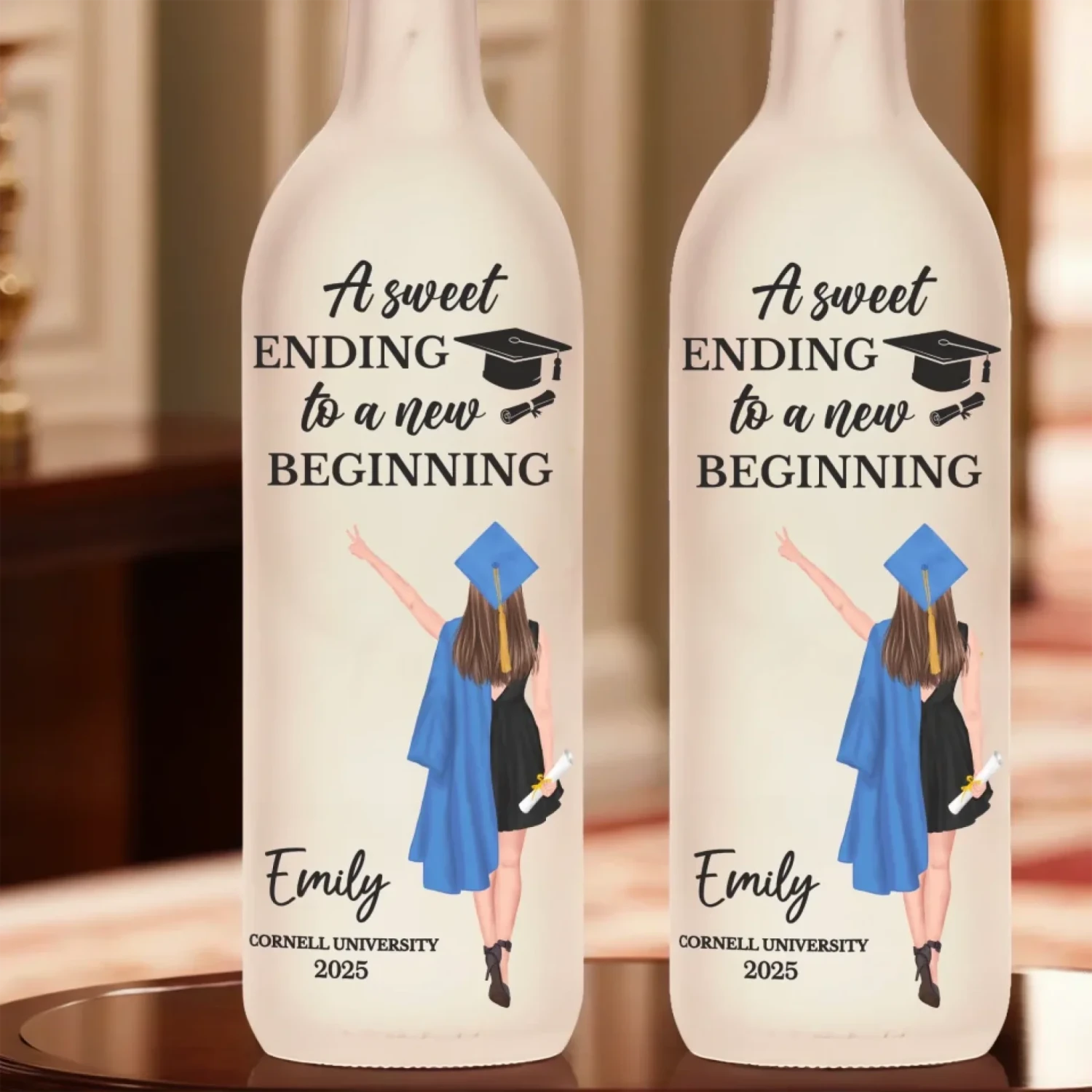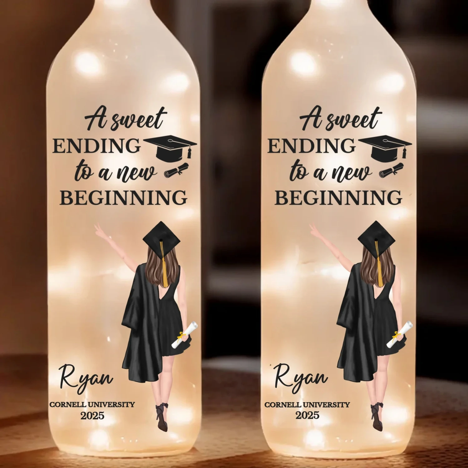 A Sweet Ending To A New Beginning – Family Personalized Custom Bottle Lamp – Graduation Gift For Family Members, Siblings, Brothers, Sisters