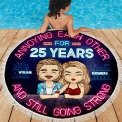 Annoying Each Other For Years – Personalized Round Beach Towel – Gift For Couples, Husband Wife