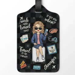 Work Hard, Travel Hard – Travel Personalized Custom Luggage Tag – Holiday Vacation Gift, Gift For Adventure Travel Lovers