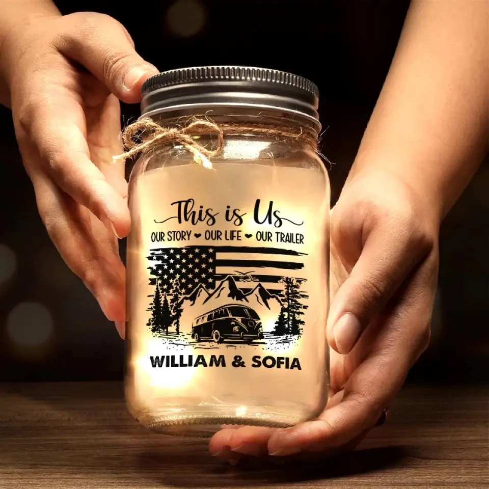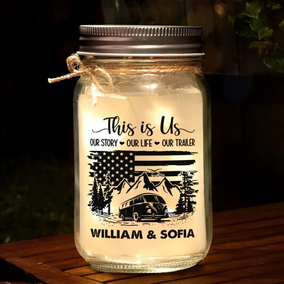 Camping Is Where The Adventure Begins – Camping Personalized Custom Mason Jar Light – Gift For Couple, Husband Wife, Camping Lovers