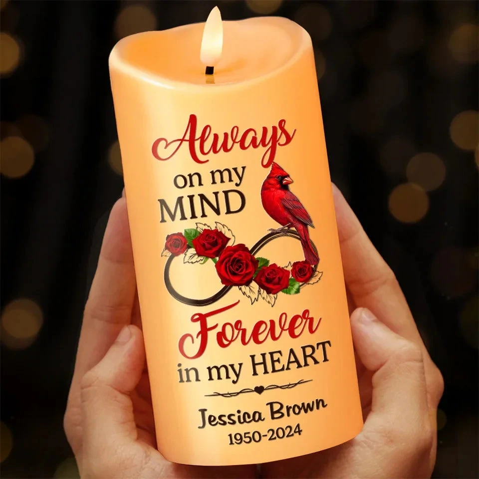 Cardinals Remind Us That Love Is Always Present – Memorial Personalized Custom LED Candle – Sympathy Gift, Christmas Gift For Family Members