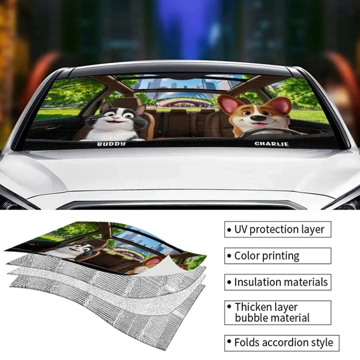 Personalized auto sunshade is an excellent way to protect your vehicle from harmful ultraviolet radiation while maintaining the original interior and extending the life of dashboards, radios, LCD screens, GPS systems, and other electronic equipment without fading or cracking! It’s also a great gift for your loved ones who want to make their cars more appealing.