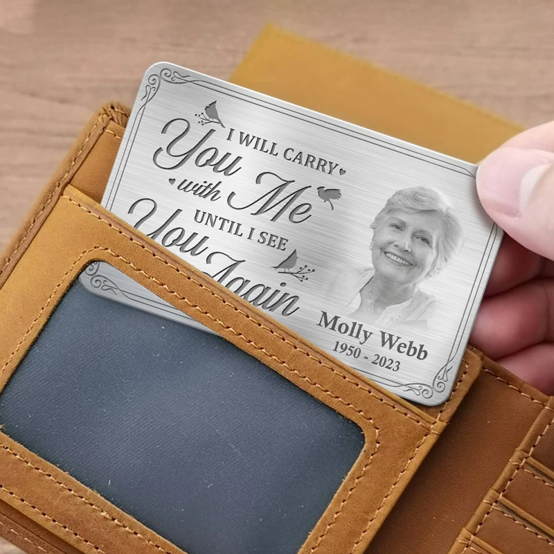 This personalized wallet card is a meaningful way to keep a memory, moment or person close to you at all times. It has perfect size for keeping in a wallet or purse, so your lovely message can be carried by your loved one wherever they go as a reminder of how much that important they means to you. This sentimental keepsake is perfect for any occasion.