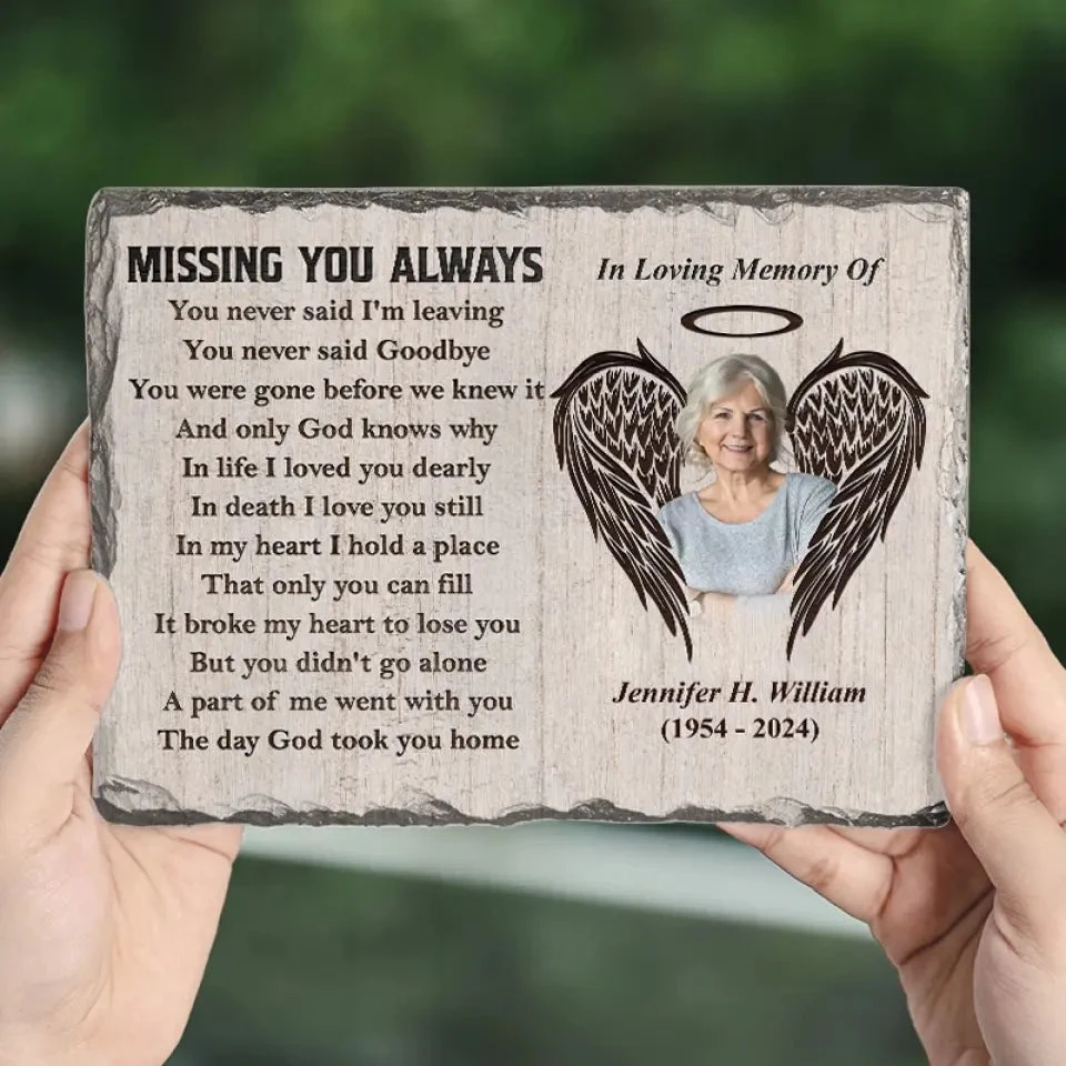Custom Photo Missing You Always – Memorial Personalized Custom Rectangle Shaped Stone With Stand – Sympathy Gift For Family Members