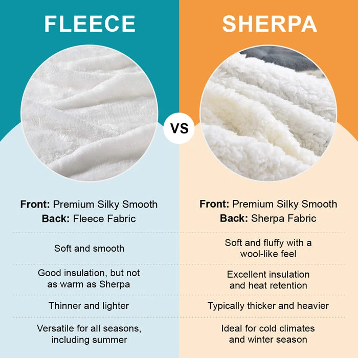 - There are 2 material options – Fleece and Sherpa. Choose the material that fits your purpose.