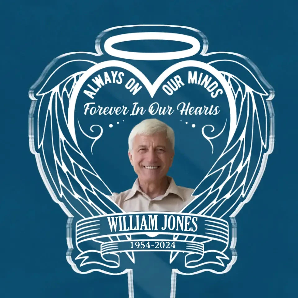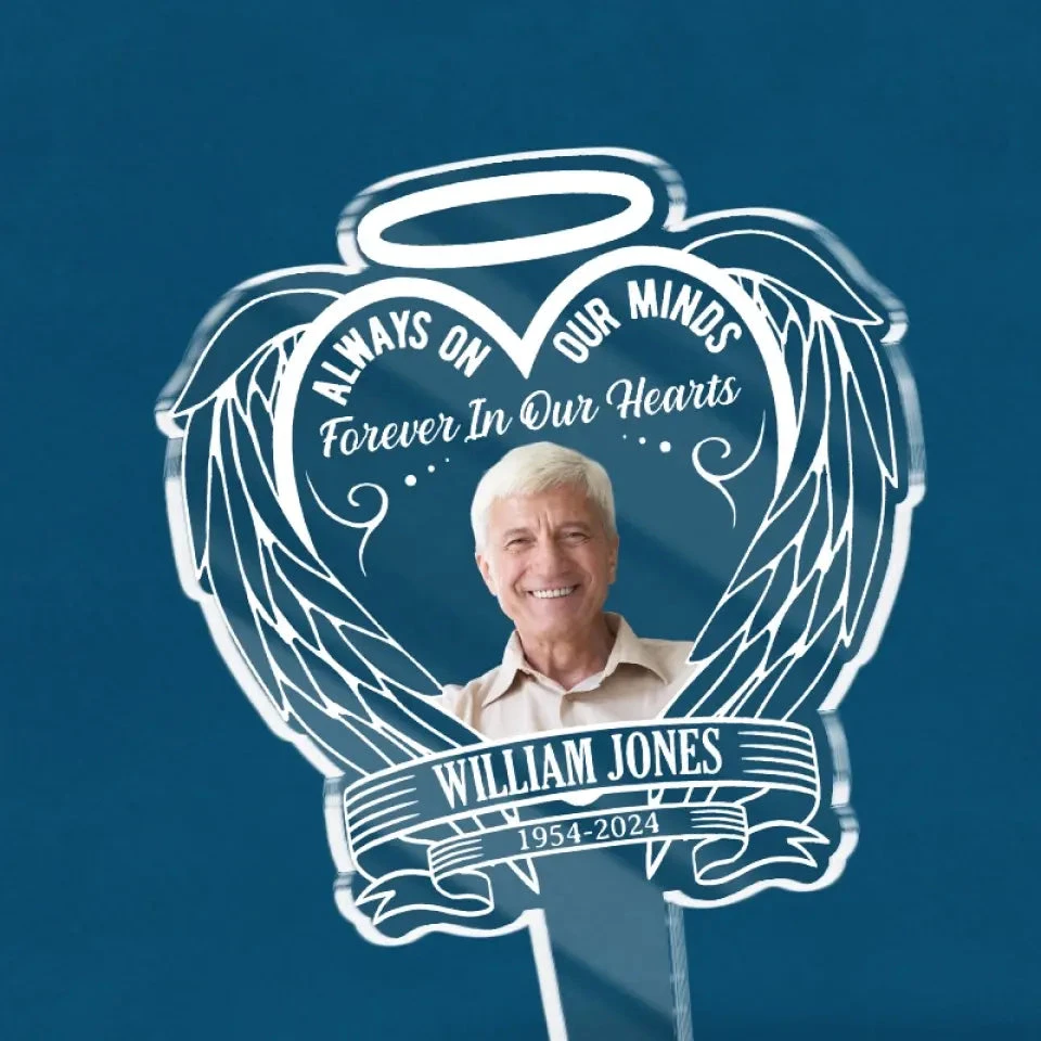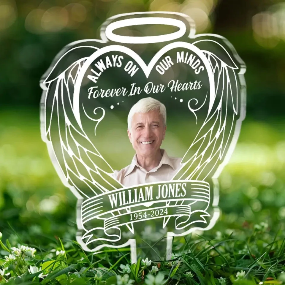A beautiful memorial acrylic stake for garden decoration, in loving memory of those who are no longer with us. These memorial gifts can be used as a grave marker, memorial plaque or displayed amongst plants.