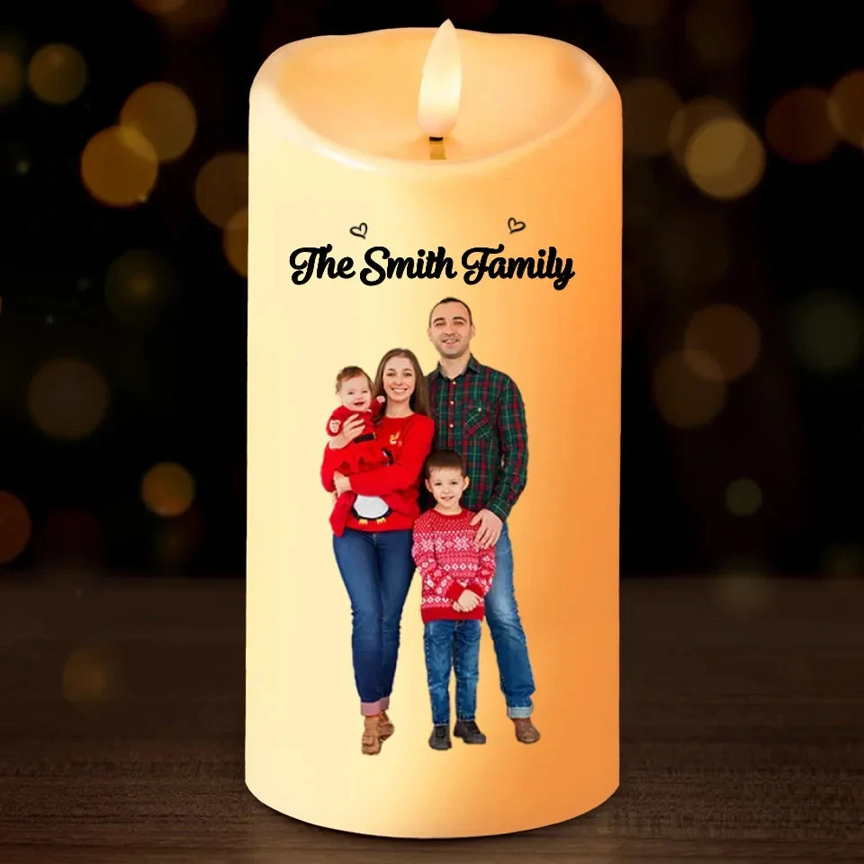 Custom Photo The True Spirit Of Christmas Is Love – Family Personalized Custom LED Candle – Christmas Gift For Family Members
