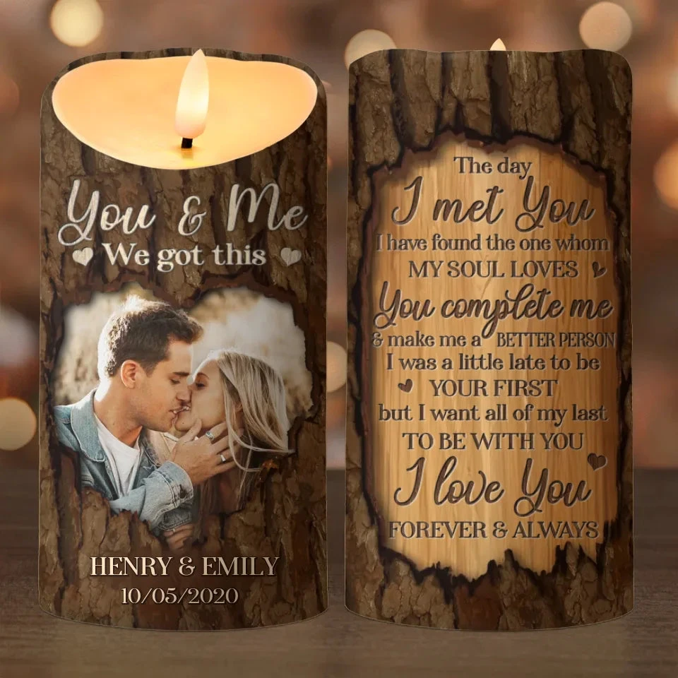 Custom Photo You Complete Me And Make Me A Better Person – Couple Personalized Custom LED Candle – Christmas Gift For Husband Wife, Anniversary