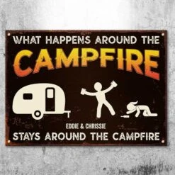 What Happens Around The Campire Stays Around The Campfire – Personalized Camping Metal Sign