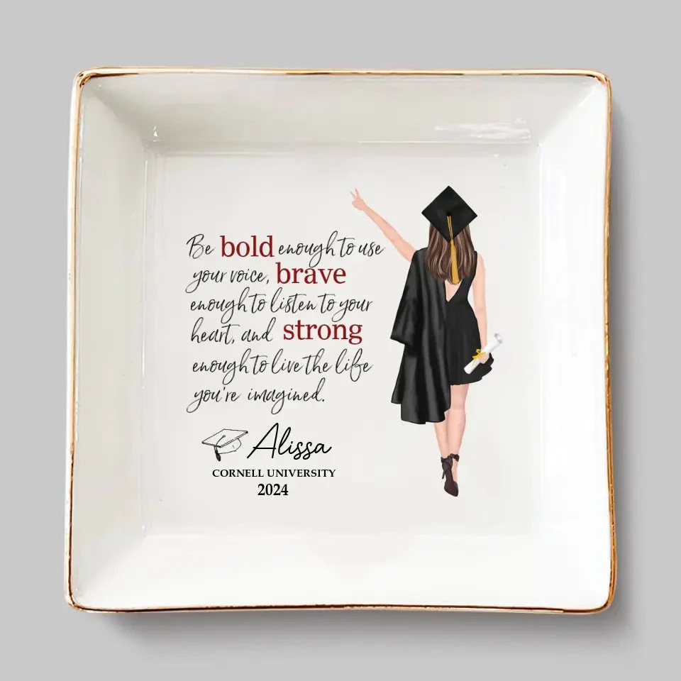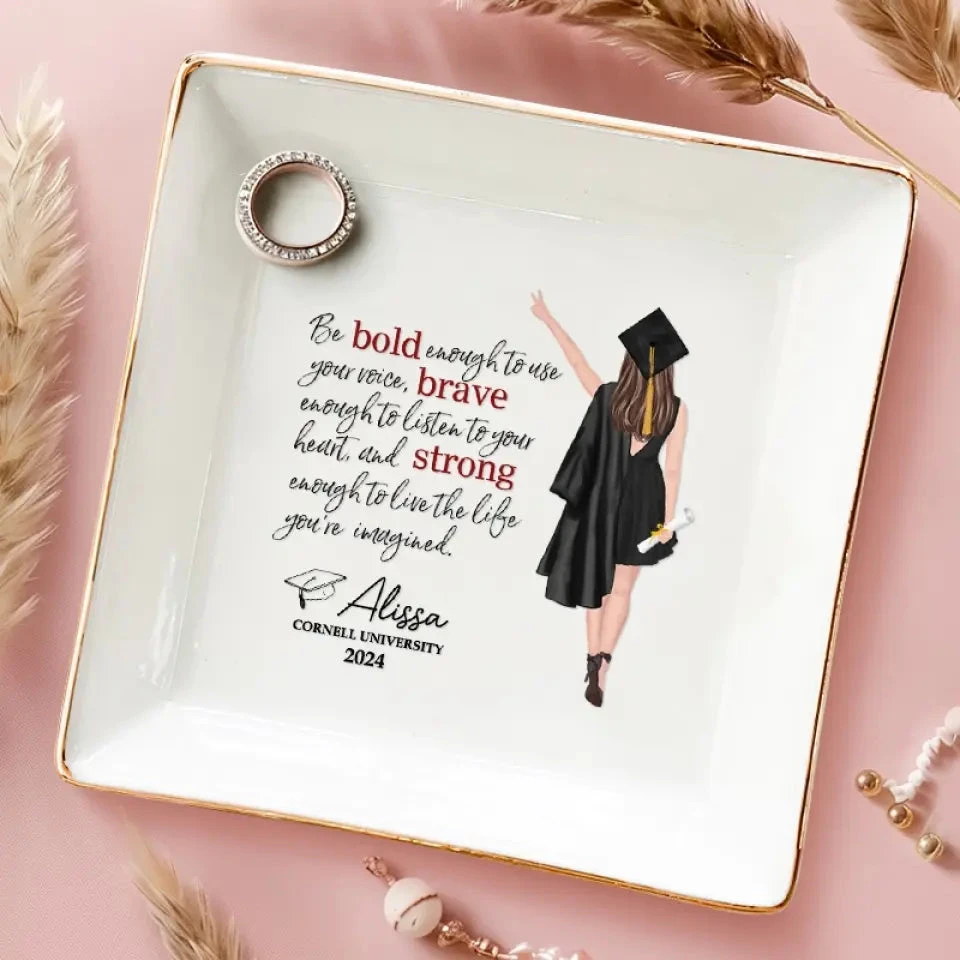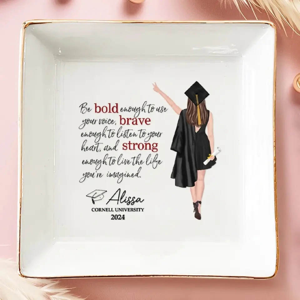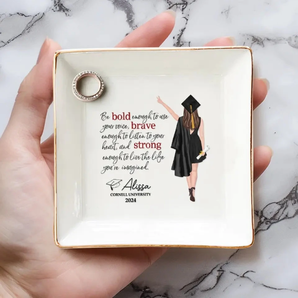 Dream Big And Just Go For It – Family Personalized Custom Jewelry Dish – Graduation Gift For Family Members, Siblings, Brothers, Sisters