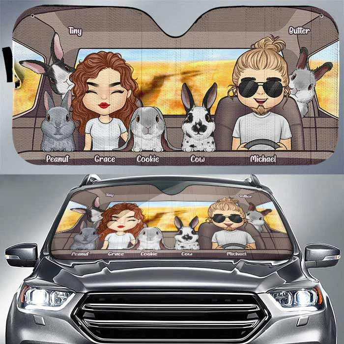 Family Road Trip With Rabbit – Personalized Auto Sunshade – Gift For Couples, Husband Wife
