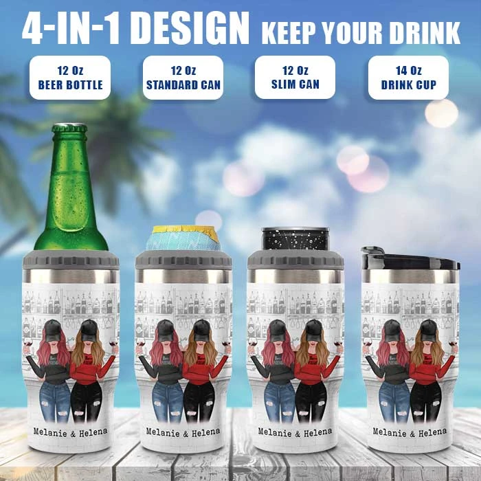 - Feature: 4-In-1 Drink Cooler – Standard cans, slim cans, bottles, and drink cups – no adapter needed. Sweatproof, the outside stays completely dry. Featuring the best quality printing, the finish is durable and scuff-proof.