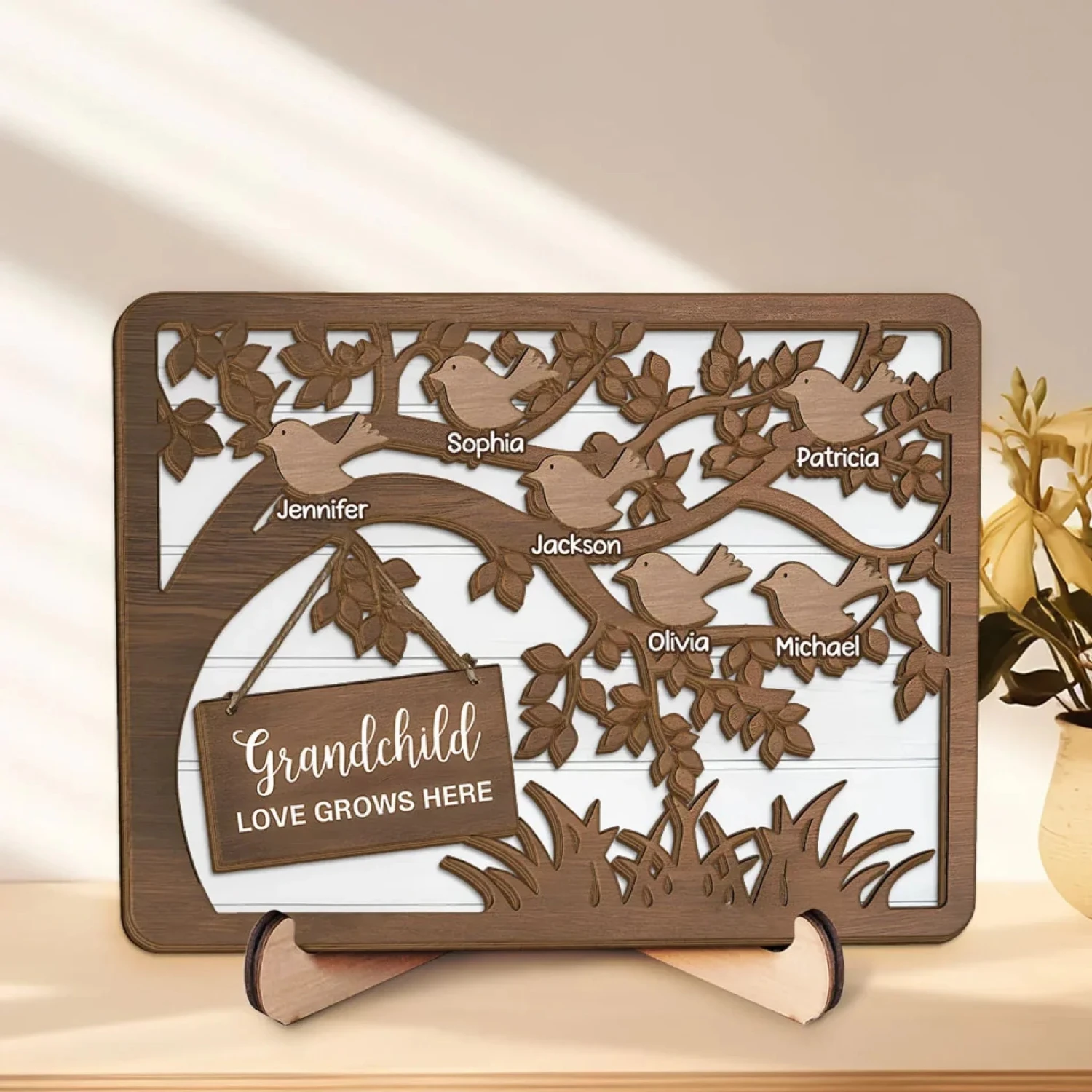 Grandma’s Love Is The Sweetest Gift – Family Personalized Custom 2-Layered Wooden Plaque With Stand – Gift For Mom, Grandma