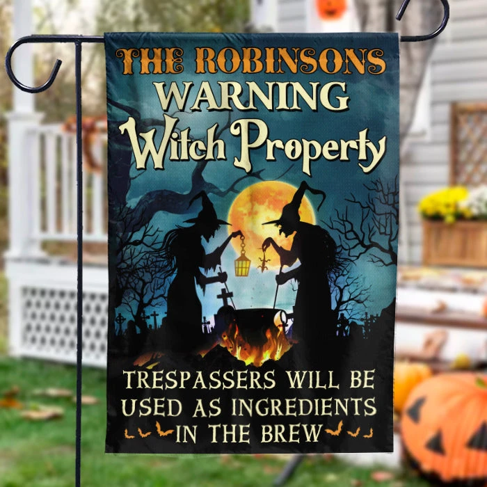 Message: “Warning – Witch property – Trespassers will be used as ingredients in the brew”.