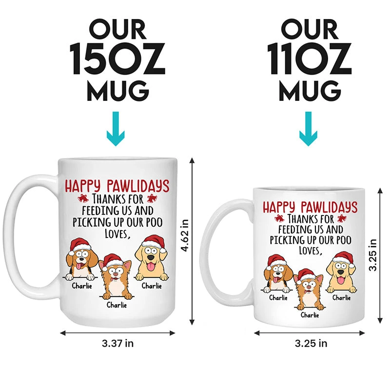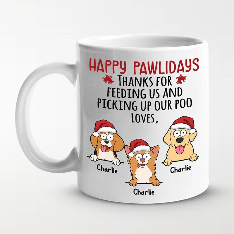 “Happy Pawlidays! Thanks for feeding us and picking up our poo. Loves,