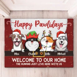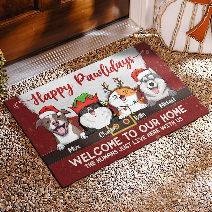 Message: “Happy pawlidays. Welcome to my/our home. The humans just live here with me/us”.