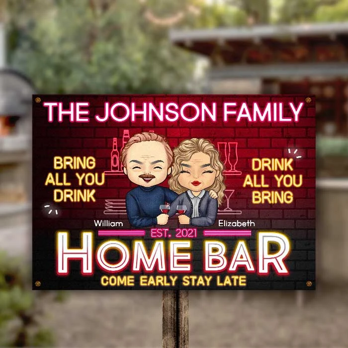Message: “Home Bar – Come early & stay late: Bring all you drink & drink all you bring”.
