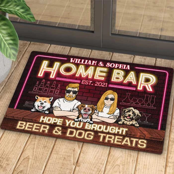 Message: “Home Bar – Hope you brought beer & dog treats”.