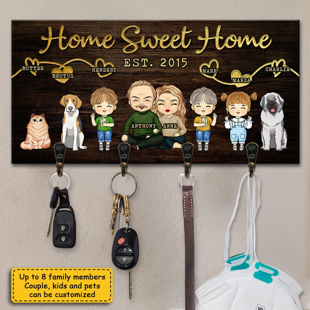 Home Sweet Home Parents, Kids & Pets – Personalized Key Hanger, Key Holder – Anniversary Gifts, Gift For Couples, Husband Wife