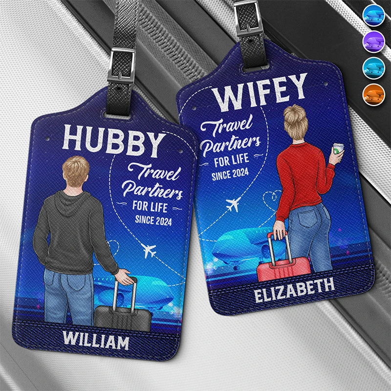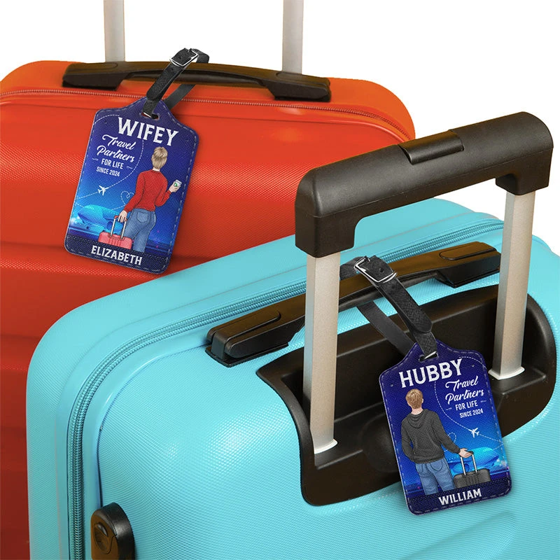 Hubby & Wifey Are Lifelong Travel Partners – Travel Personalized Custom Combo 2 Luggage Tags – Holiday Vacation Gift, Gift For Adventure Travel Lovers, Husband Wife, Anniversary
