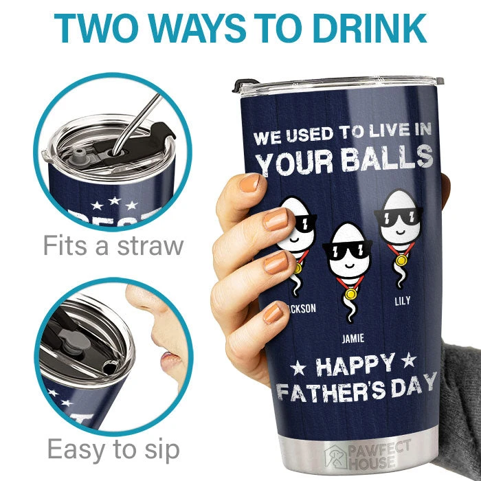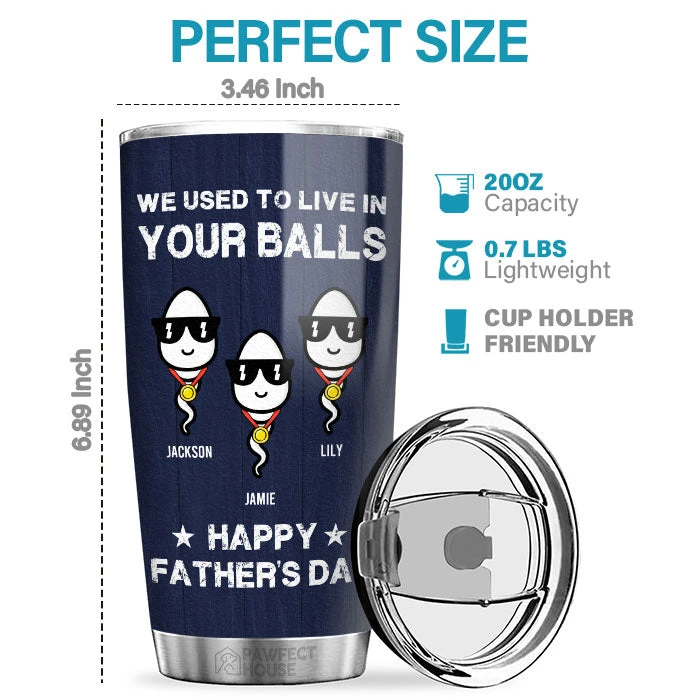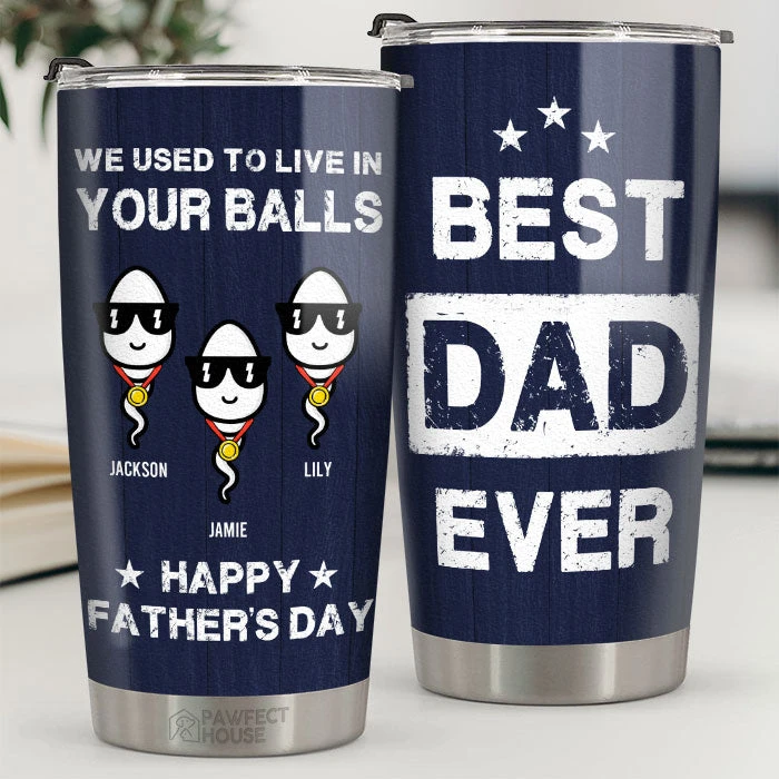 Quote: “I/We used to live in your balls. Happy Father’s Day”.