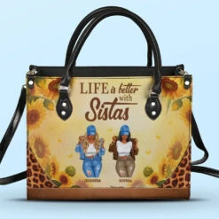 Life Is Better With Sistas – Bestie Personalized Custom Leather Handbag – Gift For Best Friends, BFF, Sisters