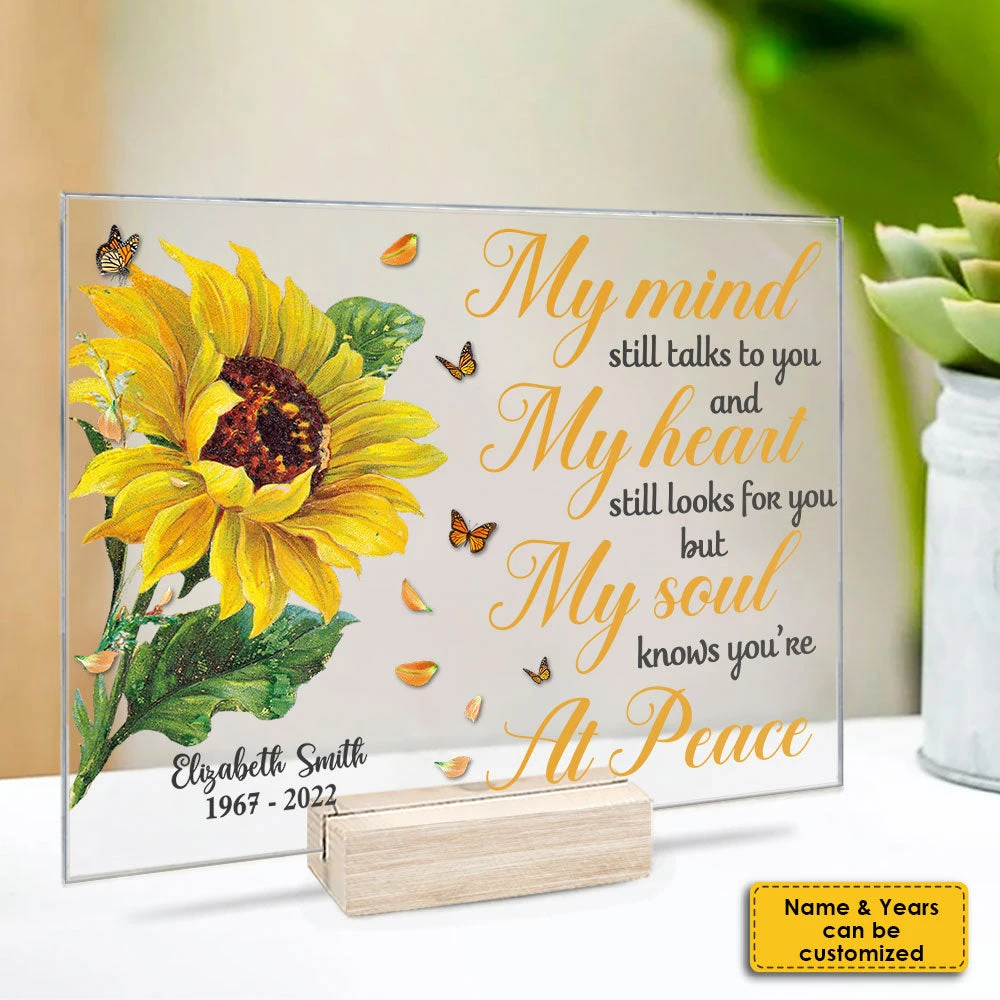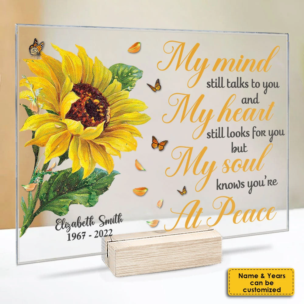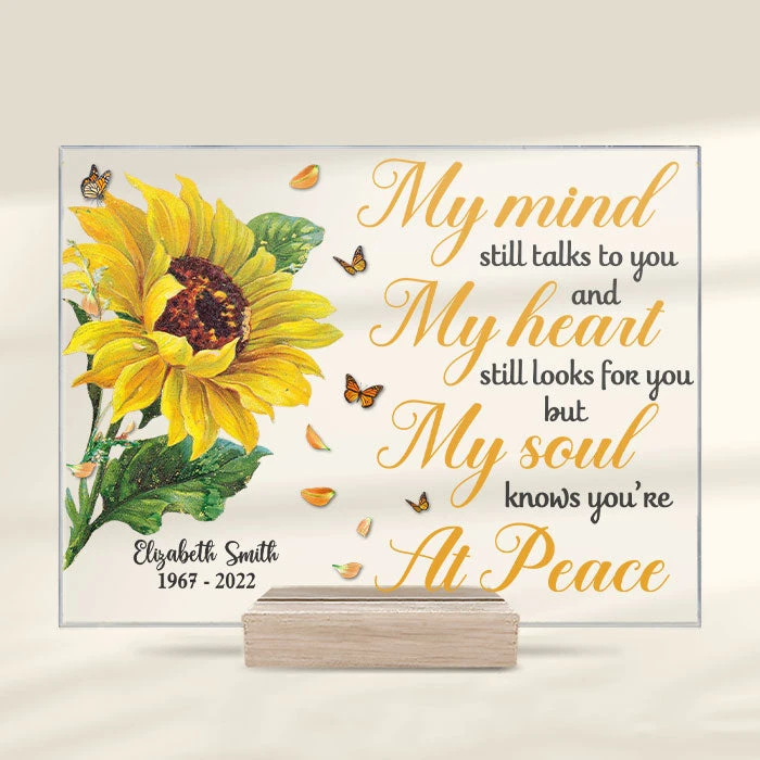 Message: ”My mind still talks to you and my heart still looks for you but my soul knows you’re at peace”.