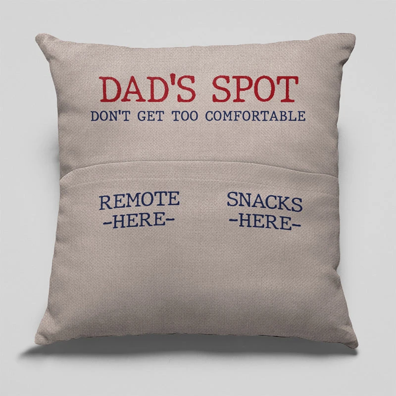 Message:Â “Dad’s spot – Don’t get too comfortable – Remote here – Snacks here”.