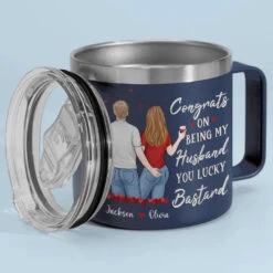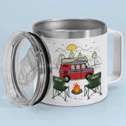 Husband & Wife, Camping Partners For Life – Camping Personalized Custom 14oz Stainless Steel Tumbler With Handle – Gift For Couple, Husband Wife, Camping Lovers