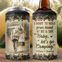 I Want To Hold Your Hand At 80 – Camping Personalized Custom 4 In 1 Can Cooler Tumbler – Gift For Husband Wife, Camping Lovers