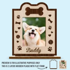 Custom Photo A Moment In My Arms Forever In My Heart – Memorial Personalized Custom Shaped 2-Layered Wooden Plaque With Flat Stand – House Warming Gift For Pet Owners, Pet Lovers