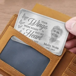 Custom Photo Your Wings Were Ready But My Heart Was Not – Memorial Personalized Custom Aluminum Wallet Card – Sympathy Gift For Family Members