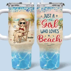 Life Is Better At The Beach – Bestie Personalized Custom 40 Oz Stainless Steel Tumbler With Handle – Summer Vacation Gift For Best Friends, BFF, Sisters