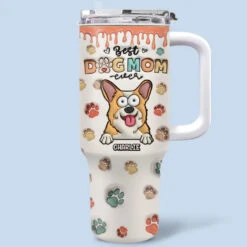 Not A Home Without Paw Prints – Dog & Cat Personalized Custom 3D Inflated Effect Printed 40 Oz Stainless Steel Tumbler With Handle – Gift For Pet Owners, Pet Lovers
