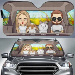 Family Road Trip With Rabbit – Personalized Auto Sunshade – Gift For Couples, Husband Wife