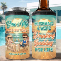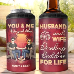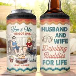 Drinking & Travels Partner For Life – Personalized Can Cooler – Gift For Couples, Husband Wife