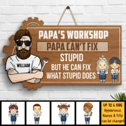 Dad’s Workshop He Can Fix What Stupid Does – Gift For Dad, Grandpa – Personalized Shaped Wood Sign