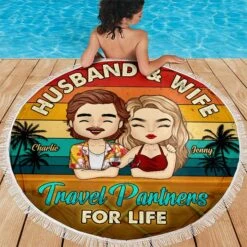 Travel Partners For Life – Personalized Round Beach Towel – Gift For Couples, Husband Wife