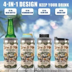 Camping Couple & Cool Dogs – Personalized Can Cooler – Gift For Couples, Gift For Camping Lovers
