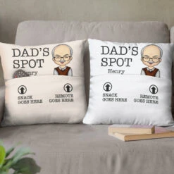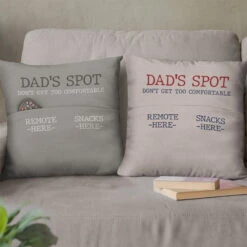 Daddy’s Spot, Snack & Remote Go Here Too – Family Personalized Custom Pocket Pillow – Father’s Day, Birthday Gift For Dad, Grandpa