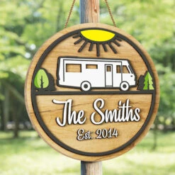 Family Camping Trip – Personalized Shaped Wood Sign, 2 Layers Sign – Gift For Camping Lovers