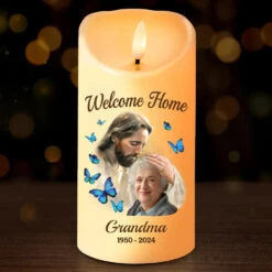 Custom Photo Home With God, But Your Love Will Never Fade – Memorial Personalized Custom LED Candle – Sympathy Gift, Christmas Gift For Family Members