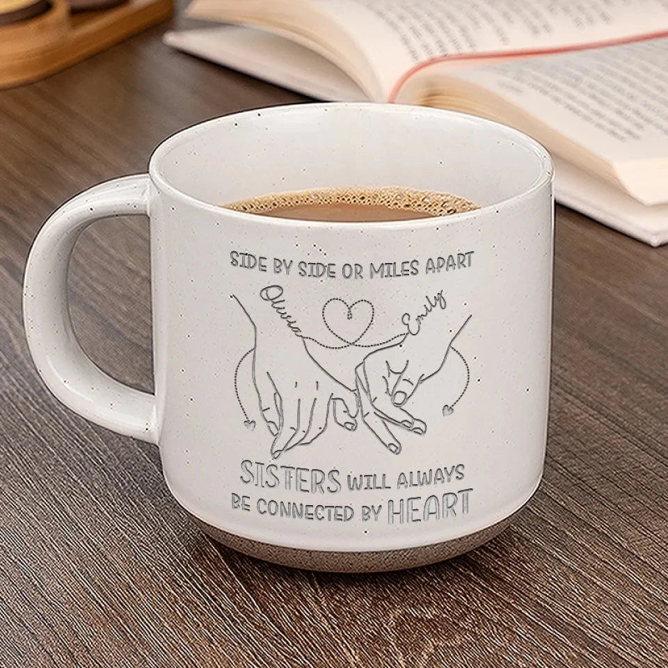 Sisters Will Always Be Connected By Heart – Bestie Personalized Custom Pottery Mug – Gift For Best Friends, BFF, Sisters