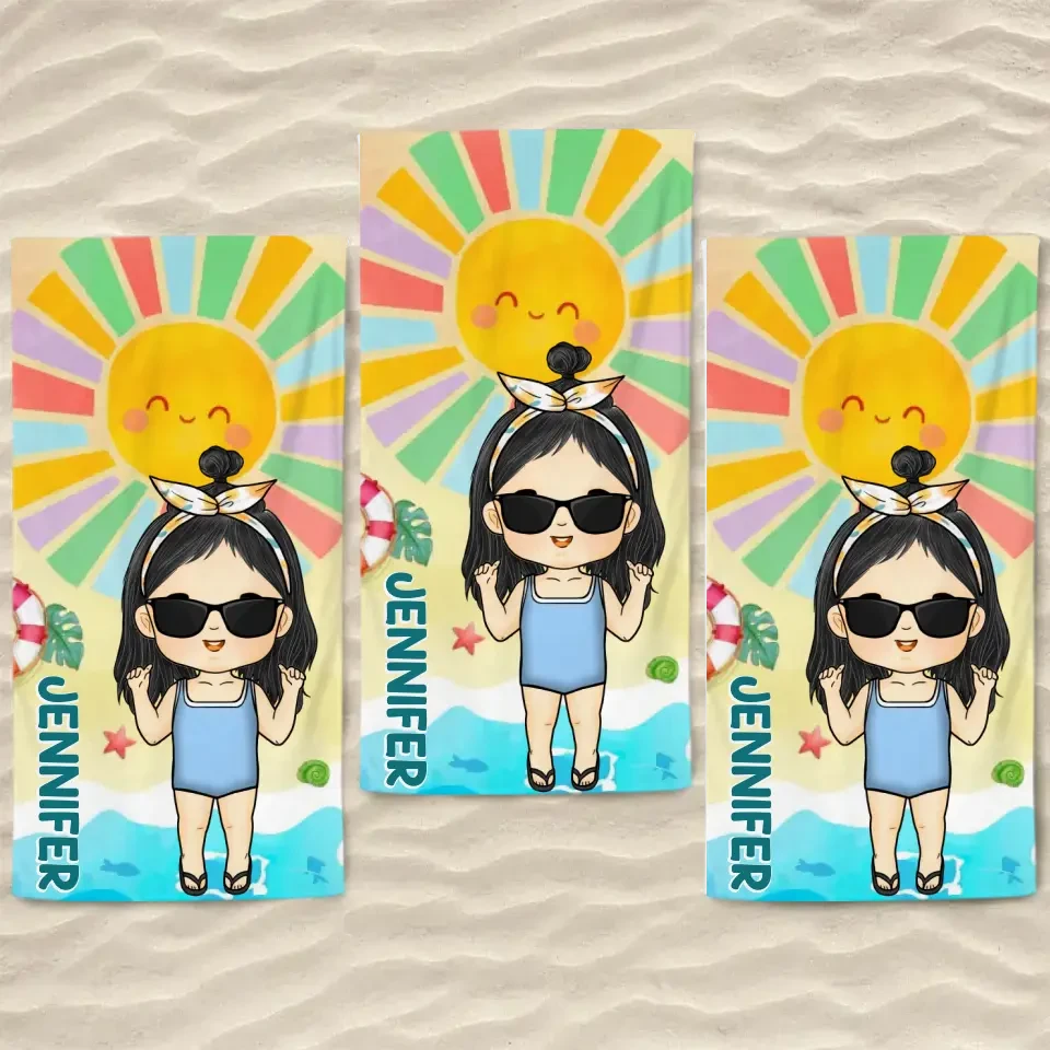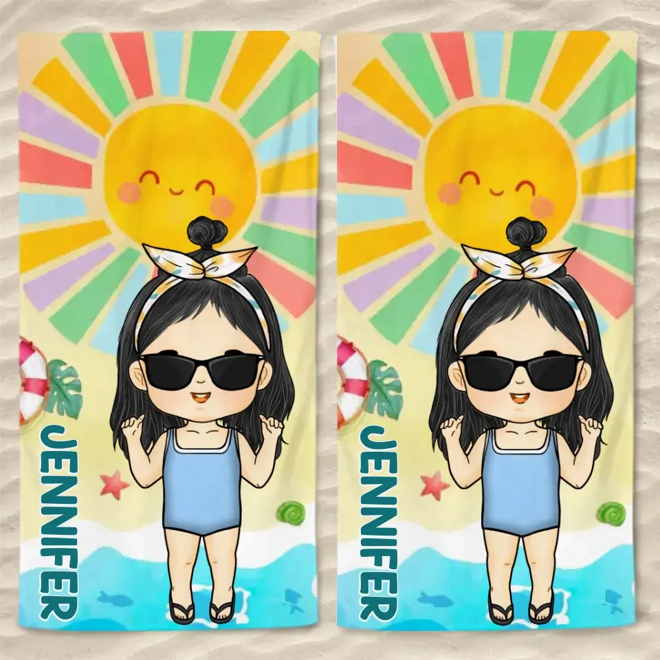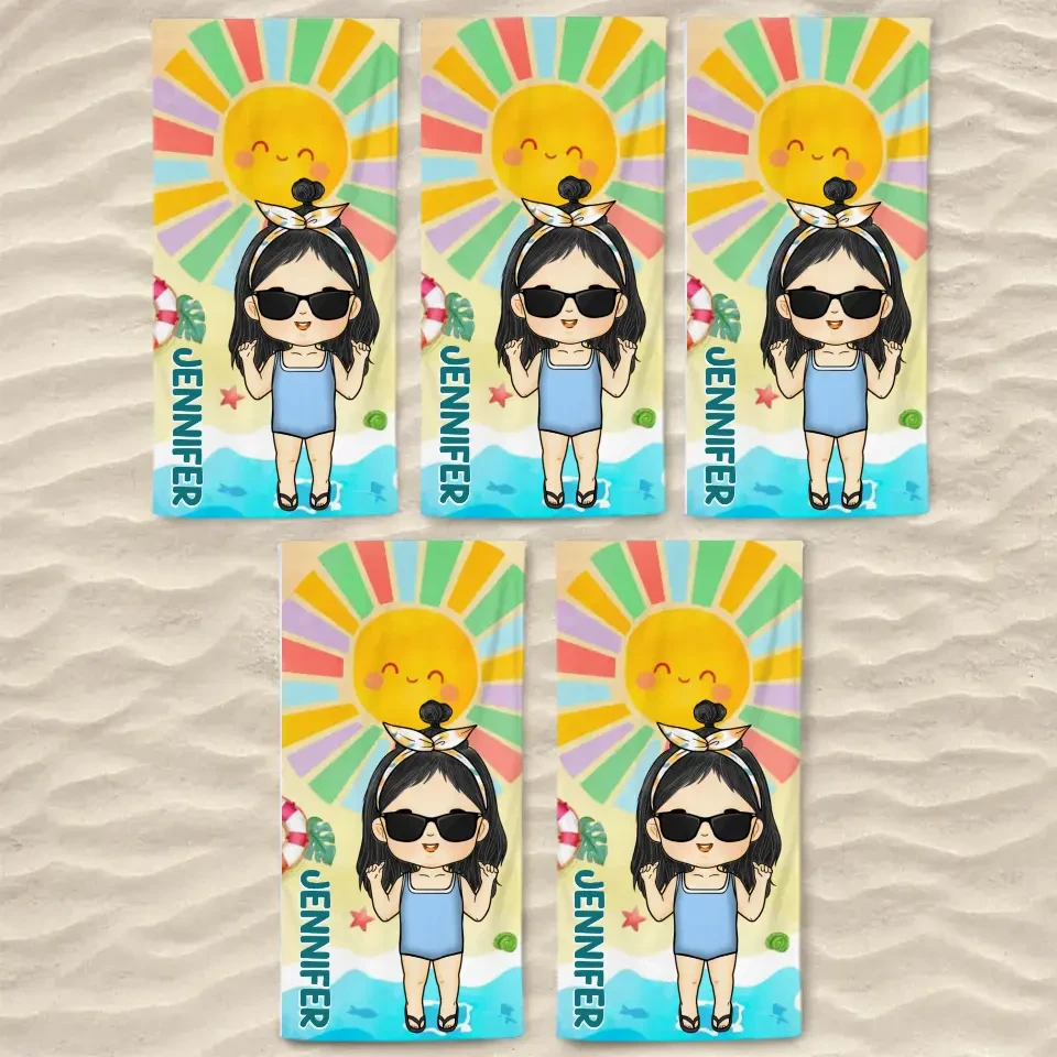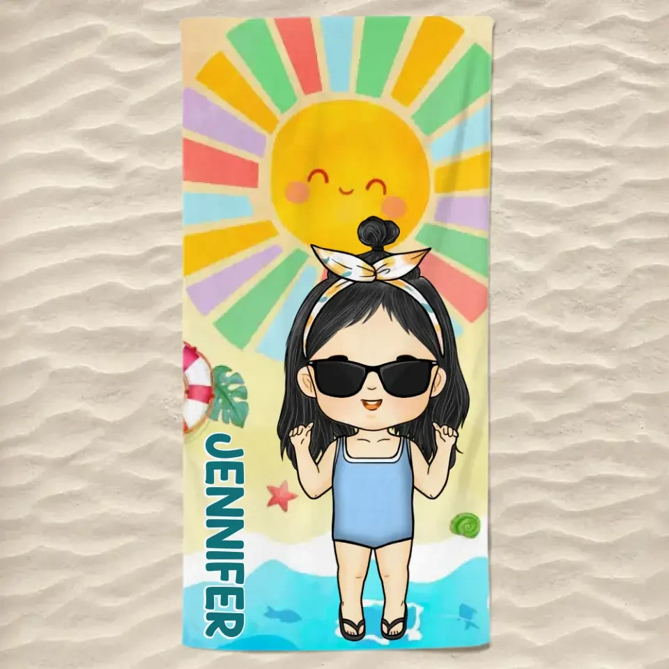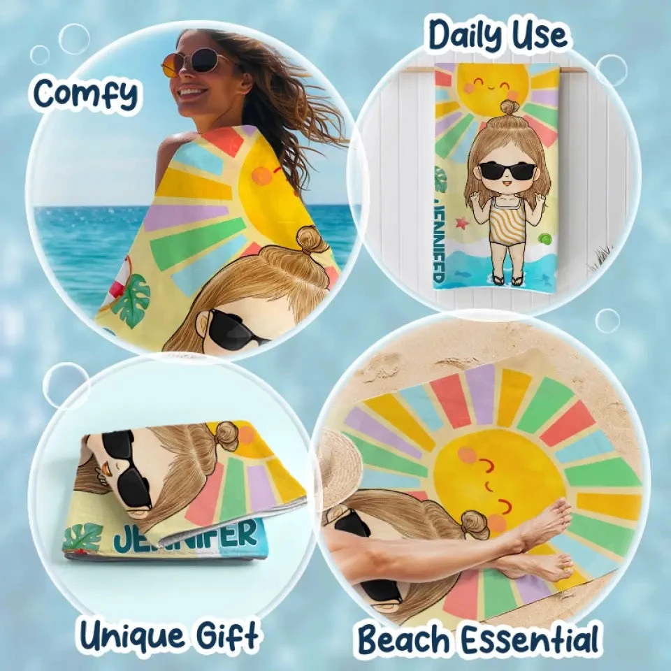 Smell The Sea And Feel The Sky – Family Personalized Custom Beach Towel – Summer Vacation Gift, Birthday Pool Party Gift For Family Members