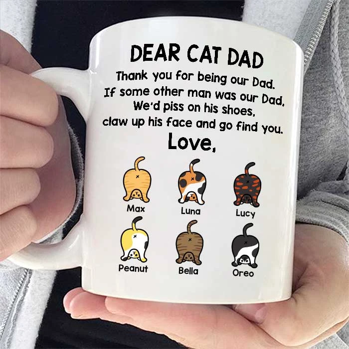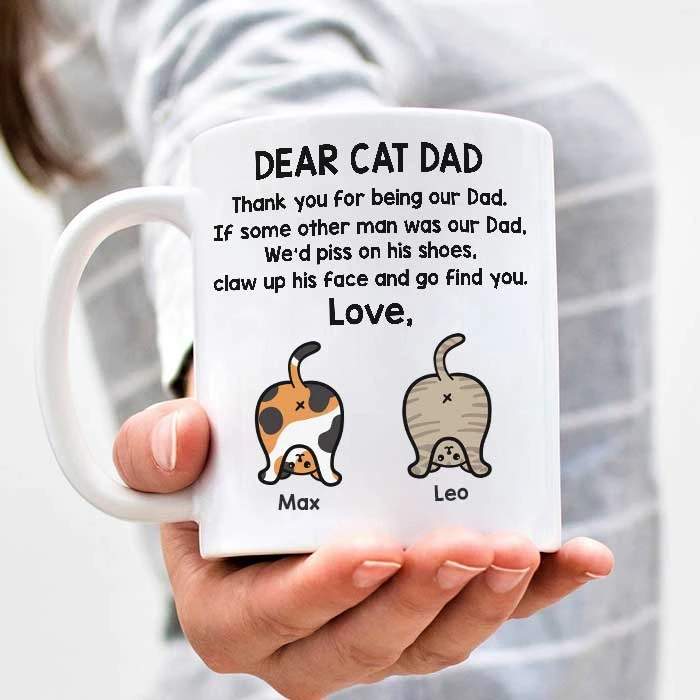Message: “Dear cat dad – Thank you for being our dad – If some other man was our dad – We’d piss on his shoes – Claw up his face and go find you – Love”.