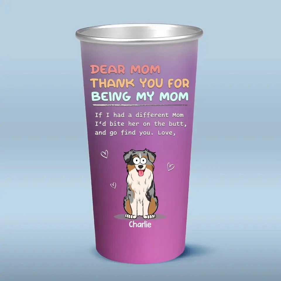 Thanks For Being Our Mom – Dog Personalized Custom Aluminum Changing Color Cup – Gift For Pet Owners, Pet Lovers