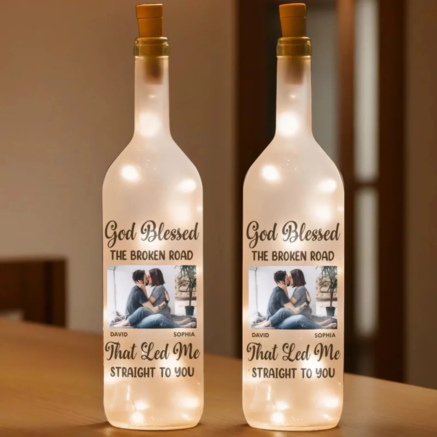That Led Me Straight To You – Couple Personalized Custom Bottle Lamp – Gift For Husband Wife