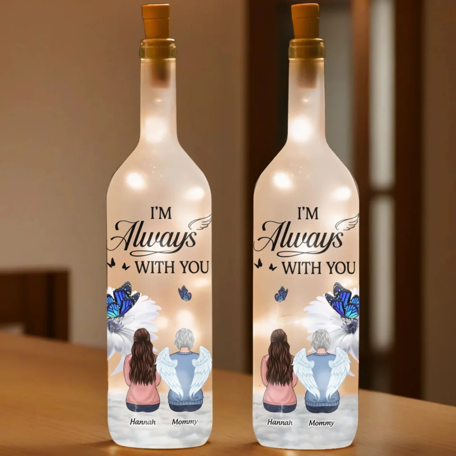 The Light Of Your Love Guides Me Forward – Memorial Personalized Custom Bottle Lamp – Sympathy Gift For Family Members